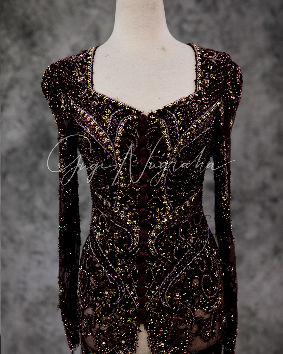 Kebaya Burgundy Shafira (tanpa ekor)