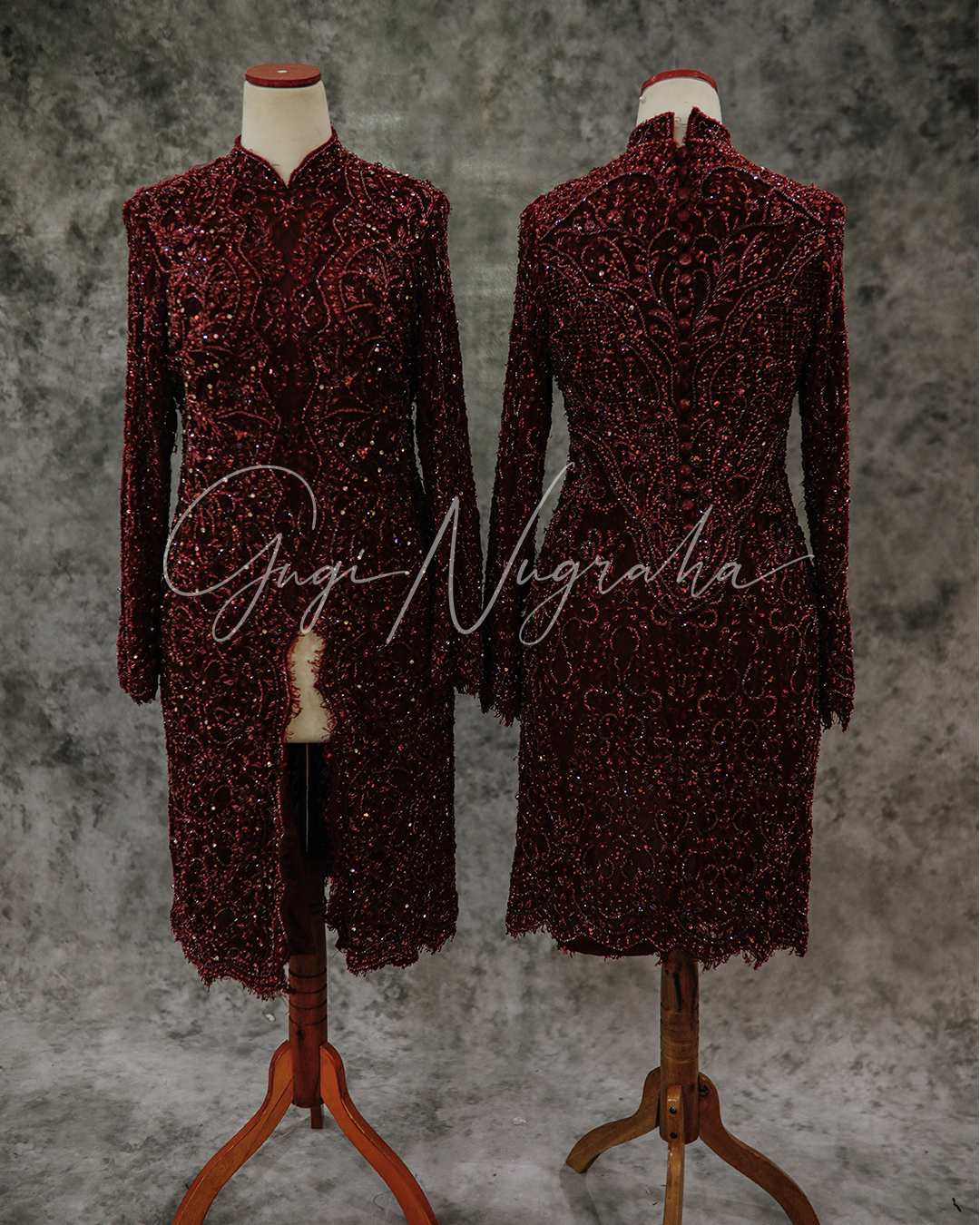 Kebaya Ibu Maroon Ninis (selutut)